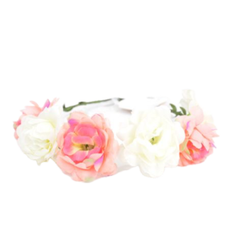 זר פרחים לראש – ורוד, לבן